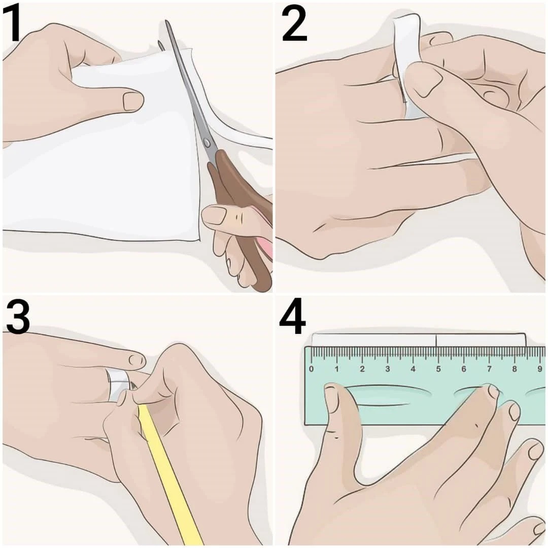 1- بإمكانك اخذ ورقة أو قطعة قماش وتدويرها على إصبعك التي ستضعين عليها الخاتم
